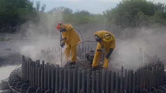 Constructora CINSSA: Servicio de Hidrodemolición de Concreto de 500 Kg/cm2 utilizando 2 Salidas, en el Parque Eolico Vicente Guerrero,